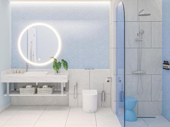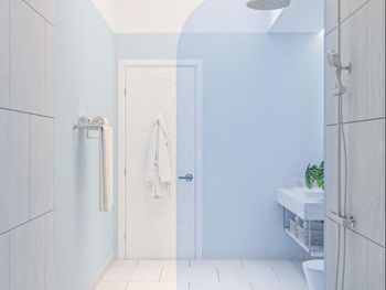 5) Конструкция ванной комнаты непродуманная: во время дождя вода покрывает весь пол ванной комнаты: перепад высот между частью ванной комнаты с тропическим душем без крыши и остальной частью ванной комнаты не спасает.