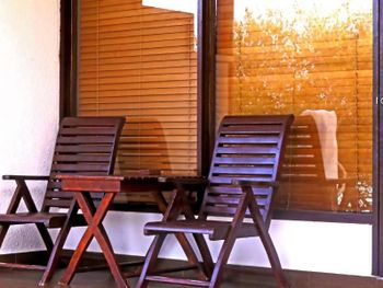 4) Номера выглядят очень сильно уставшими, мебель на вид 20-им летней давности, темная и старомодная. В номерах темно несмотря на окна в пол, поскольку окна заставлены мебелью и номер окружен пальмами, отбрасывающими тень на крыльцо.