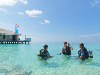 Отдыхали с женой, остались очень довольны. Наличие собственного рифа - восторг, подводный мир восхищает. Видели черепах, осьминога, каратиц, морских звезд, мурену, множество рыб и конечно же акул. На острове есть очень достойный дайвинг центр и там работают классные ребята. Снорклинг с мантами (экскурсия) превзошел все ожидания, нам очень повезло увидеть их так близко и в таком количестве, а также встретить китовую акулу! Еще попробовали ночной снорклинг - тоже понравилось можно увидеть больше акул (они неопасные).
