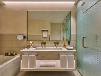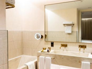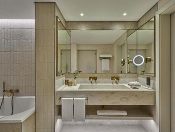 Гости курортного отеля с 5 звездами ERTH Abu Dhabi Hotel могут воспользоваться крытым бассейном, сауной и гидромассажной ванной.