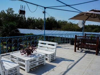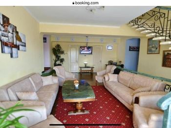 Нет фото санузла не просто так, это очень неудобная маленькое помещение, где вода сливается в слив посреди пола, непонятно как пользоваться потом туалетом или раковиной, когда все мокро. Очень тесно и неудобно. Сам номер тесный и неудобный, с жутким перекрашенным креслом посередине, на которое не то что сесть, а взглянуть страшно. Пол потертый, двери доисторических времен, все чисто, но очень плохо. Для обогрева видимо предлагалась уличная батарея, которая заняла половину оставшегося места, но мы любим открытые окна в любую погоду, так что воспользоваться ей не пришлось. Сама гостиница прям на шоссе рядом со старой бензоколонкой, стоянкой фур и разбитым асфальтом. Все в гостинице потертое и старое, сделано из кусков ковров и невероятно старой мебели. Фотографу, который все это безобразие фотографировал для букинга 5+. Но чувство разочарования в такой ситуации не избежать.