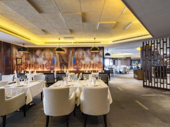 При отеле Ezdan Palace работают 3 первоклассных ресторана. Элегантный ресторан Tolaitola, открытый весь день, специализируется на блюдах современной арабской и интернациональной кухни. Ресторан Red Orchid — тайский ресторан со своими фирменными блюдами, отличается большой открытой кухней и выступающими в зал рабочими столами, а также двумя приватными обеденными комнатами. Во всех ресторанах оборудована открытая кухня и терраса со столиками на открытом воздухе.