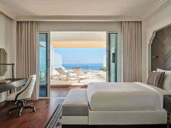 Пляж очень маленький,шезлонгов не хватает.Горячая вода в номере протекает очень долго,утром не дождаться.Ассортимент блюд на завтраке не для отеля 5 звёзд.