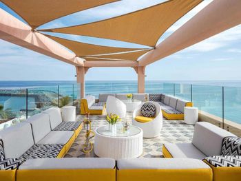 Внизу бар отвратительный, грязные стаканы, напиток ждешь 30-40 минут. Дизайн бассейна оставляет желать лучшего. Лежаки на бассейне и пляже давно пора выкинуть. Пляж от камней не чистят, невозможно ходить босиком.