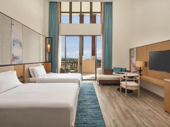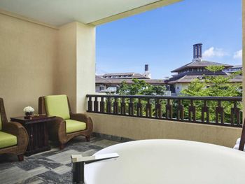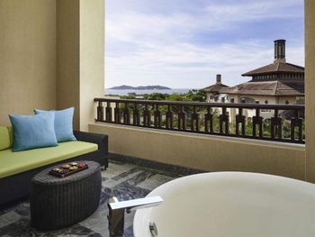 Приехали раньше времени заселения. На ресепшен неправильно поняли наше бронирование,но сразу пришёл на помощь Leo Huang Yafei,он помог нам подключиться к WeChat. Мы сразу выяснили у него что включает лаундж. При бронировании номера нигде не могли найти информацию о лаундже. Очень рекомендую попросить при заселении подключить вас к WeChat. В этом чате можно спрашивать всю информацию и писать когда вам потребуется помощь. Во время нашего проживания чувствовали заботу и внимание. Получали в чате сообщения от Leo о мероприятиях в отеле,времени работы лаунджа и ресторана. Номер супер! В нем очень приятно находиться! Очень красивый. Напитки в день заезда бесплатно. Большой балкон с ванной и зоной для отдыха. Письменный стол-произведение искусства!По телевизору подключен канал Россия. Комфортная кровать с удобным матрасом и сатиновым бельем!!!! Завтрак до 11 часов. Супчики,омлеты,выпечка,фрукты. Вообщем,максимум того,чем можно завтракать. Посещения лаунджа С 14 до 17 часов. Шведский стол:мясное блюдо, бутерброды с красной рыбой,различные сендвичи,много разных пирожных,фрукты. Ассортимент пирожных меняют, поэтому пока находишься можно попробовать разные виды. Напитки: пиво трёх видов,кола,фанта,соки,чай и кофе из кофемашины. С 17 до 19 сет набор ( тарелка супа,салат, два разных пирожных и бутерброд. Напитки уже за дополнительную плату)Получается практически ужин. Всё очень вкусно. Спасибо и за это тоже плюс!!! Бассейны огромные. Шезлонги везде есть свободные,полотенца длинные на весь шезлонг и без всяких карточек. У бассейна всегда стоит вода в индивидуальных упаковках, солнцезащитный крем 50 единиц и освежающая вода-спрей для лица. Можно так же пользоваться кругами и жилетами для тех, кто не умеет плавать. Опять забота о нас!!!!! Спасибо! Море! Много читала,что купаться нельзя. НО... мы купались! Вышли к морю и недалеко справа около соседнего отеля Rosewood Sanya возможно купание. Может там структура дна другая. Спасатели никого из моря не выгоняют.
