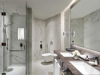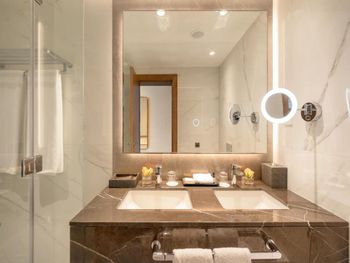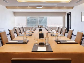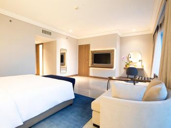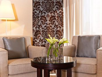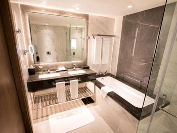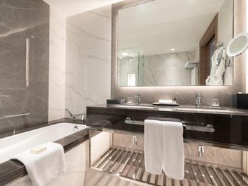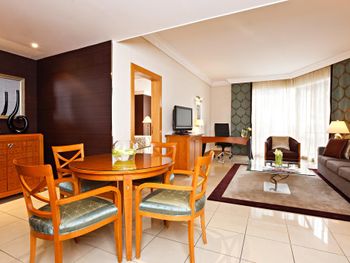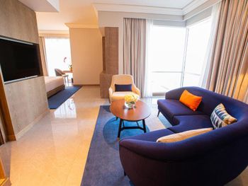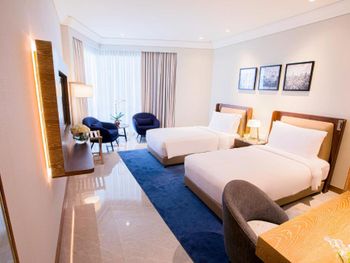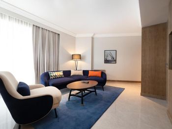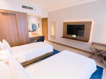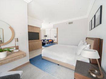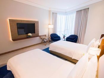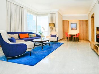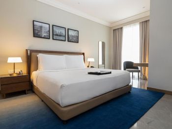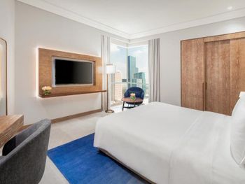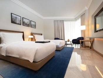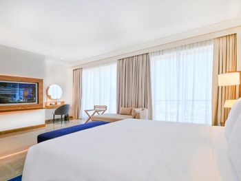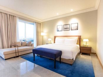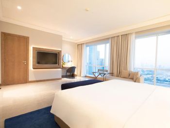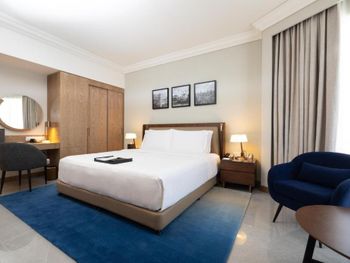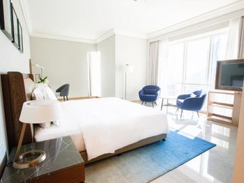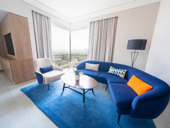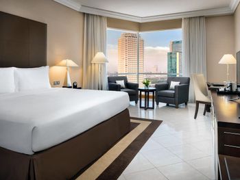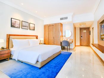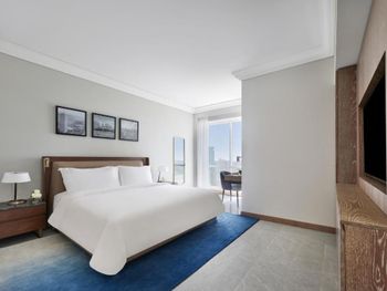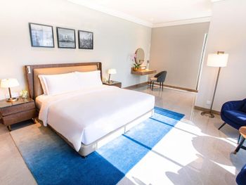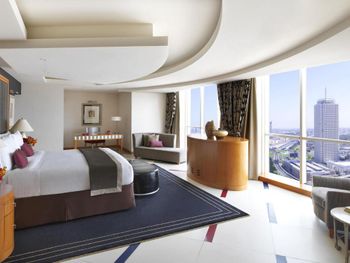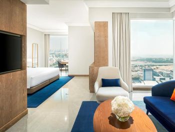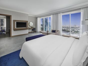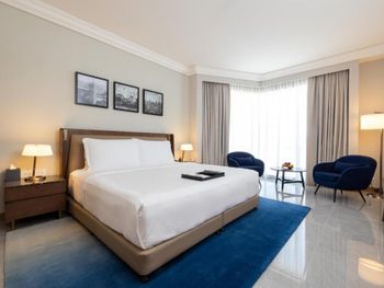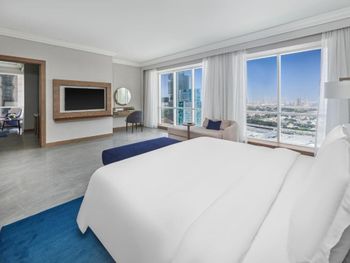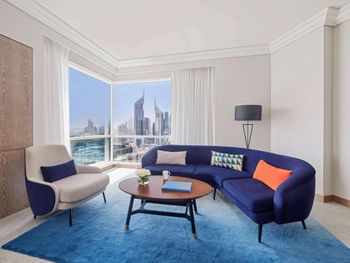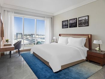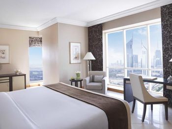 Все 394 номера и люкса отеля Fairmont Dubai оформлены в элегантном классическом стиле, который гармонично сочетается с современным декором и удобствами. Из французских окон каждого номера открывается панорамный вид на Персидский залив и городской пейзаж.