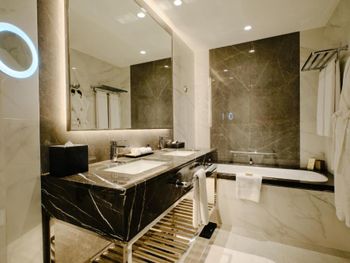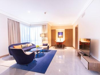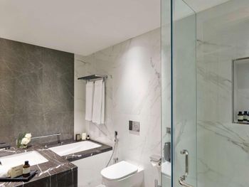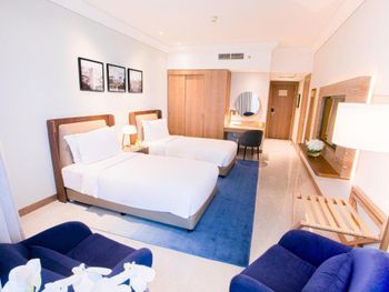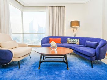 Номер соответствовал описанию, в номере были халаты, тапочки, кофемашина и чайник. В номере два санузла, большая гостиная. Неплохой вид (15 этаж). Отличная работа консьержа, всегда помогали с багажом и были очень доброжелательны. До Дубай молл 10 минут на такси. До аэропорта примерно 20 минут. Проживали в отеле одну ночь между перелетом.