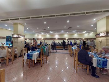 Слабый отель. Питание однообразное, недостаточный выбор. Небольшой выбор десертов. Фрукты практически отсутствуют. По системе HB на ужин из напитков только вода, остальные напитки за дополнительную плату. Периодически не хватает мест в столовой. Трансфер на пляж Turquoise beach всего лишь 2 раза в день (один до обеда, один после). Неудобное время трансфера в Naama Bay и старый город (22.00-0.00). Слабая анимация.
