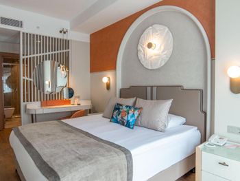 Все комфортабельные номера курортного отеля Fame Residence Lara декорированы в мягких тонах и оснащены кондиционером. Из некоторых номеров открывается красивый вид на Средиземное море.