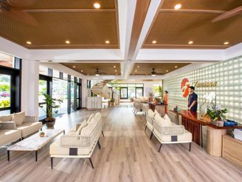 Заехали чуть раньше, пока ждали заселения даже не предложили воды, хотя было приятно пока ждёшь чтобы о тебе хоть чуть позаботились, в одной комнате отвратительно работал кондиционер, и вообще они очень неудачно расположены, прямо на кровать поток,в номере бегал гекончик, на пляже вечером что то искусало ноги, в море кусается планктон.