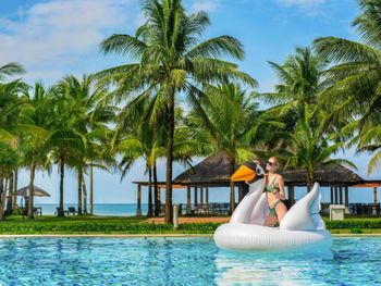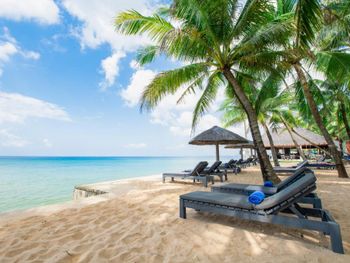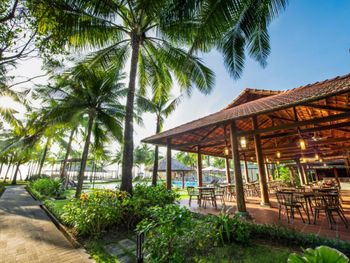 Очень вежливый персонал. Нам очень помогала во всех вопросах девушка на ресепшене Trang. В отеле завтрак до 13.00 - это очень удобно для тех у кого разница во времени большая. Мы жили в домике с видом на море. Они двухэтажные. Со второго этажа вид на море лучше. Территория очень ухоженная и железная. Все в пальмах, лежаком хватало на пляже. В номере было все, вплоть до зубной пасты и шетки. Также чай, кофе, чипсы, вода - все обновляли каждый день бесплатно. Кровать очень удобная для сна. Очень понравилось, что есть бесплатный трансфер до и от аэропорта. Ехать минут 10, но приятно когда тебя встречают и провожают! У меня был день рожденье! Отель поздравил тортиком! В ресторане персонал помогал во всем. Хочется отметить таких сотрудников как Кieu, Tinh, Тuyet. Учитывайте когда бронируете номер, что отель состоит из двух частей. Одна возле моря, другая за дорогой. Но в описании номеров все честно описано. При отъезде подарили веер, брелок и открытки. Вроде мелочь - но было очень приятно!
