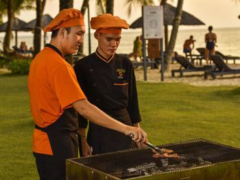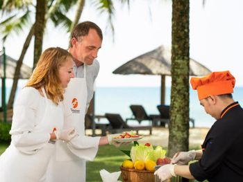 В ресторане Garden подаются блюда европейской и азиатской кухни, а в ресторане Famiana представлен широкий ассортимент фирменных блюд Фукуока, вьетнамских деликатесов и блюд интернациональной кухни. Осуществляется доставка еды и напитков в номер. Напитки предлагаются в баре у бассейна или на пляже.