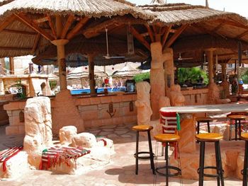 Самое отрицательное впечатление о гостинице – это питание. Еду в столовой готовят как для поросят: намешают какой-то фигни в большом чане. Голодными вы точно не останетесь, но все приготовлено невкусно, как попало. Из овощей только капуста, зеленые перец, огурцы и морковка, т.е. даже помидоров нет, хотя они стоят очень дешево, мы же покупали овощи, когда жили в апартаментах, и знаем цены. Фрукты тоже – только финики и гуава. Самое неприятное и неудобное – это отсутствие самообслуживания в столовой. Все блюда типа яичницы или блинчиков на завтрак или мясные блюда на ужин вам накладывает специальный человек и только ограниченную порцию. Т.е. в столовке устроены так называемые станции готовки, где, внимание, отстояв очередь (!) вы можете получить порцию готового блюда. Конечно, никто не запрещает встать в очередь за понравившимся блюдом еще несколько раз, но оно вам надо?! Даже за простым салатом типа греческого вам придется постоять. Вообще, лучше приходить не раньше, чем через час после начала обслуживания, чтобы спал основной поток посетителей и уменьшились очереди. Весь персонал в столовой какой-то раздражительный и грубый, относятся к посетителям как к быдлу, им явно опостылела эта конвейерная и никчемная работа, а она действительно никчёмная, ведь всего этого можно было бы избежать, организовав привычный шведский стол с самообслуживанием, как во всех подобных гостиницах мира. Территория отеля большая и зачем-то вся выложена неровным булыжником, вечно ходишь и спотыкаешься.