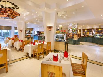 Через букинг невозможно купить олл инклюзив только через турагентство. В наш пакет были включены завтраки и ужины. Обед стОил 20 $ на человека. Еду я бы оценила на на 3с минусом не было разнообразия блюд, порошковое картофельное пюре почти всегда было пересолено. Сосиски не съедобны. . Официанты не успевали убирать столы. Видно, что отель экономит на персонале. Вида на море нет даже бокового в силу строения отеля. Номера в бунгало маленькие, потому лучше бронировать в двух этажных зданиях у дороги - там они и больше и приличнее. В первый же день у дочери кто-то из отдыхающих украл полотенце с шезлонга у бассейна.