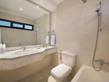 При бронировании выставили цену 411 долларов, по факту взяли 530. Говорят, что это Букинг берет сверху. При бронировании не видно окончательной цены. Это нарушение закона прав потребителей. Буду писать жалобу на Букинг в Роспотребнадзор. Отель очень старый, поселили сначала в убитый грязный номер с жуткой ванной, вонючим неработающим холодильником, чёрными застиранными полотенцами и бельём, после претензий переселили на следующий день в нормальный. Это такая модель продаж. Сначала лицом в грязь, потом халат, тапки, фруктовая тарелка и бесплатный трансфер. Обманули, но потом раскаялись. Спасибо, но это неприемлемо.