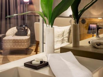 Номера и люксы оформлены в современном стиле. В числе удобств — кондиционер, мини-бар и сейф. В каждом номере также имеются телевизор со светодиодной подсветкой и спутниковыми каналами, диван, кофемашина и рабочий стол. Помимо этого, в распоряжении гостей собственная ванная комната с душем, феном, халатом и бесплатными туалетно-косметическими принадлежностями.