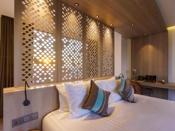 При бронировании номера был указан вид на бассейн , 35 метром квадратных. При заселении нам предоставили номер с видом на отель, окна в окна, в котором еще идет ремонт. Это просто возмутительно. Мы предупредили администрацию что будем жаловаться на Booking. В конечном итоге через два дня нас переселили в номер классом выше , за который нам пришлось доплатить 4500 бат. за 3 суток. еще через трое суток нас переселили в номер указанный в бронировании. но там все таки не было указанный 35 кв. м. Три переезда за 12 дней.