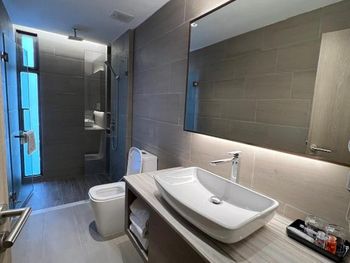 Странный душ ( льёт из всех леек), скрипит кондиционер. Очень «хорошая» слышимость коридора.