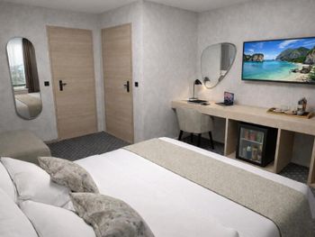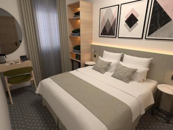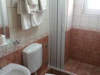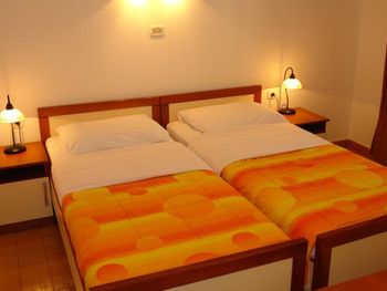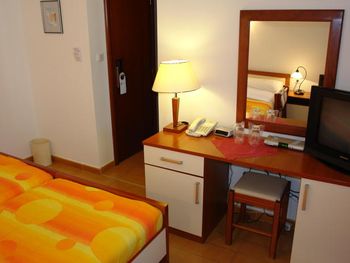 Изначально, бронируя номера (2 номера), я указывала количество человек (4 взрослых) и мне был предложен вариант (2*26€), я перепроверила данные (2 номера). По приезду в отель, оказалось, что нужно доплатить ещё 40€ (по 20€ за человека). На логичный вопрос, почему на Booking.com указаны другие условия и не прописывается, что оплата за человека, администратор начал нервничать, возмущаться, вызывающе себя вести. Так как время было позднее, других вариантов искать было некогда, поэтому остались. Зайдя в комнату, в нос ударил запах собачий фекалий, номер в целом чистый, аккуратный, но видно, что старый. Душ и телевизор как будто ещё с 90-Х времён. Звукоизоляция между номерами ужасная, было слышно, как умывается человек в соседнем номере. При вопросе, есть ли у них утюг, мне сказали, что нет, но они могут погладить за 5€. Слов нет, одни эмоции! От силы заплатила за этот номер 15€, но с таким отношением персонала и за такую цену не надо.