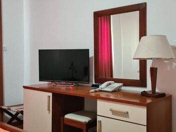 Номера довольно старые, в комнатах было темно, не все лампочки работают, а в нашем номере один светильник был разбит и даже были осколки на спинке дивана! Не очень гостеприимный персонал, отказали в выселении на час позже, (а чек-аут в этом отеле очень рано, в 10.00) хотя отель и был полупустым и при выезде было очевидно, что это не составило бы проблем. То есть раннее заселение или поздний выезд согласовать здесь не очень то реально, на встречу не охотно идут. А могли бы оставить только приятные впечатления и желание вернуться!