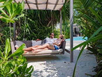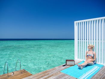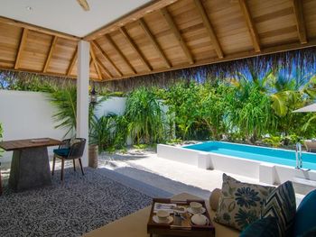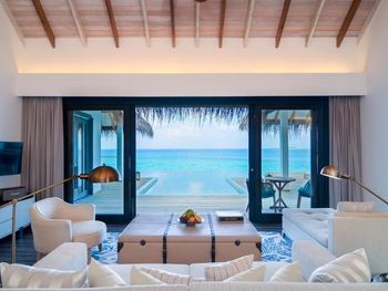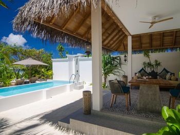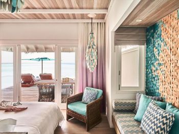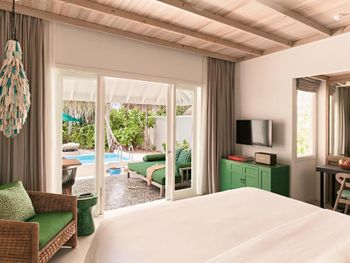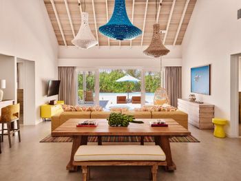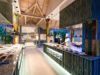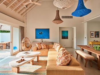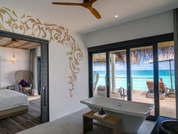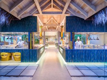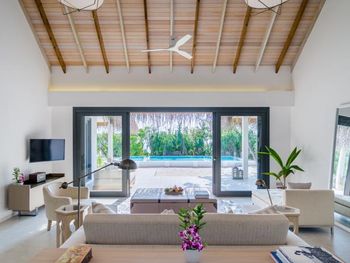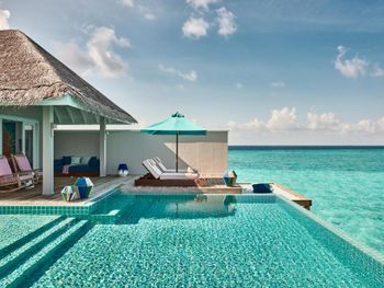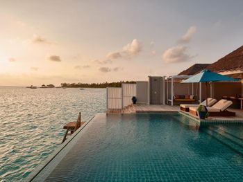 Отдыхали в начале сентября семьей с ребенком 4,5 года. Жили 3 дня на "вилле на воде" и 4 дня на "пляжной вилле с собственным бассейном". Обе виллы выходят на собственную лагуну, внутрь домашнего рифа, защищены от ветра и волн. Сначала забронировали питание HB, но по приезду сразу доплатили за AI (недешево, но окупилось) - кроме минибара и напитков (алкогольных и безалкогольных) входят ужины и обеды в тематических ресторанах (особенно хорош ресторан японской кухни!). Персонал исключительно дружелюбный, очень удобная система watsapp-чата для проживающих (постоянная связь со службой сервиса). В основном ресторане каждый вечер тематический ужин по определенной кухне (программа 7-дневная, потом повторяется). В баре у бассейна на верхней открытой террасе есть кальянная зона. Для нас очень актуально было наличие детского клуба - своя огороженная территория с бассейном и игровыми зонами. Для детей проводятся ежедневные программы и мастер-классы. Единственное, что не хватало русскоязычной няни (сказали, что скоро должна появиться). Пользовались спа (все прекрасно), ездили на рыбалку и комплиментарный снорклинг (вдоль домашнего рифа) - все понравилось. Перелет от Мале на гидросамолете занимает 30 мин. Отдельное спасибо Анне и Анастасии за помощь при отдыхе!