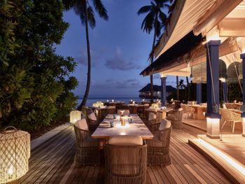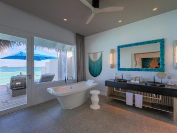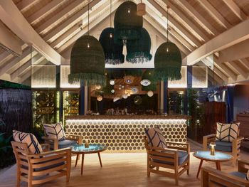 Отдыхали в начале сентября семьей с ребенком 4,5 года. Жили 3 дня на "вилле на воде" и 4 дня на "пляжной вилле с собственным бассейном". Обе виллы выходят на собственную лагуну, внутрь домашнего рифа, защищены от ветра и волн. Сначала забронировали питание HB, но по приезду сразу доплатили за AI (недешево, но окупилось) - кроме минибара и напитков (алкогольных и безалкогольных) входят ужины и обеды в тематических ресторанах (особенно хорош ресторан японской кухни!). Персонал исключительно дружелюбный, очень удобная система watsapp-чата для проживающих (постоянная связь со службой сервиса). В основном ресторане каждый вечер тематический ужин по определенной кухне (программа 7-дневная, потом повторяется). В баре у бассейна на верхней открытой террасе есть кальянная зона. Для нас очень актуально было наличие детского клуба - своя огороженная территория с бассейном и игровыми зонами. Для детей проводятся ежедневные программы и мастер-классы. Единственное, что не хватало русскоязычной няни (сказали, что скоро должна появиться). Пользовались спа (все прекрасно), ездили на рыбалку и комплиментарный снорклинг (вдоль домашнего рифа) - все понравилось. Перелет от Мале на гидросамолете занимает 30 мин. Отдельное спасибо Анне и Анастасии за помощь при отдыхе!