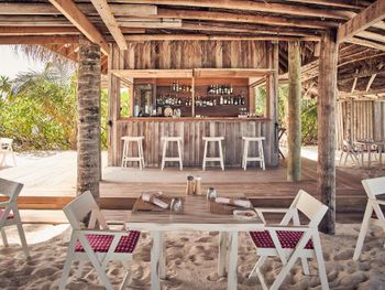 Очень, очень большой остров. Прям такой маленький вариант турецкого отеля. Много развлечений, много детей, много персонала. Приличные общие бассейны. Отель очень понравился, виллы на воде вообще шикарны, новые и просторные. Базовый all-inclusive очень хорош, много алкоголя и коктейлей. Если брать повышенный уровень то будут taittinger наливать бесплатно. Рестораны, конечно, не мишлен, но голодными не оставят. Есть кальян. Раз в неделю был устричный бар.