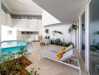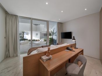 Хороший отель с большими номерами (брали номер с 4 спальнями, бассейном на террасе и номер с 1 спальней для мамы с подругой с джакузи) для тусовок и день рождений. Солнца на террасе с джакузи к сожалению увидеть практически невозможно. Хороший русскоговорящий персонал. Хотим особенно выразить благодарность Алисе за помощь в размещении и решении других вопросов и Ольге хостес на завтраке.