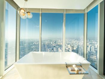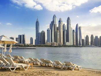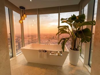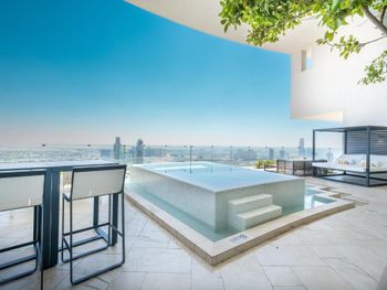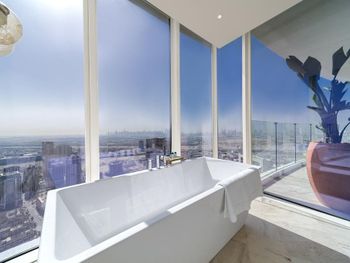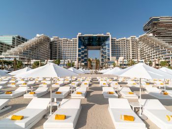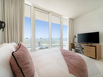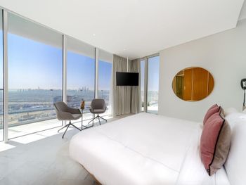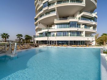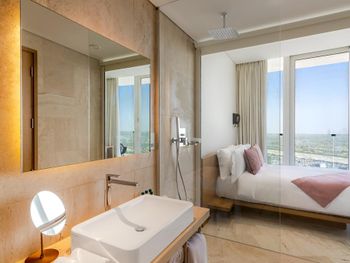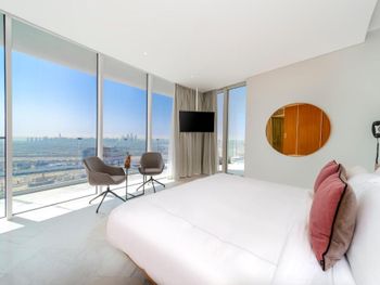 Выбрала этот отель так как хотела в отель FIVE PALM 5*, но на наши даты он был разобран. А отель FIVE Jumeirah Village 4* является сетью и разрешает доступ на территорию и организовывает свой трансфер. Действительно каждые 2 часа от нашего отеля ходил трансфер до отеля, там предоставлялись шезлонги и также трансфер был обратно. Еще в этом отеле меня подкупила ванная с панорамным окном и видом на небоскребы. Мы брали номер SKY - 34 этаж. Пожалуй из плюсов это все(
