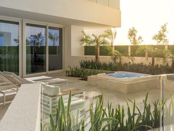 При заселении ужасно грязный пол , диваны в разводах , не регулируется кондиционер (только градусы), либо дует слишком , либо выключается , и направлен Вам в голову когда вы спите. Вечные перебои с вайфаем. При наличии собственной террасы с джакузи , на тебя направлено 4 камеры , и не понятно кто и зачем за тобой наблюдает. Оры, крики , шум , Музыка , караоке до 4 утра , с соседних балконов , и никому нет дела. Большая часть сотрудников на ресепшн (в связи с covid 19), даже не надевают маски. Долго ждёшь заселения , и ещё столько же выселения.