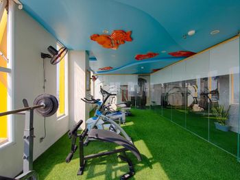 Заселялись в 3 часа ночи, оперативно и без проблем. Персонал и на ресепшн, и в столовой очень дружелюбный, общительный. Завтраки отличные. Есть бассейн, спортзал, отличное место.