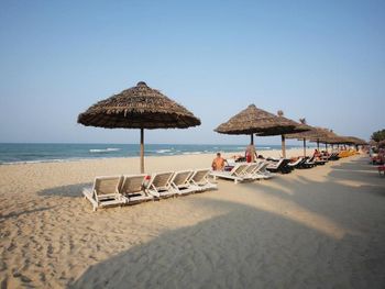 У отеля практически первая линия на пляже. Есть свои лежаки с зонтиками, что редкость для этих мест. До пляжа 1 минута. Пляж уединный. Есть ещё туристы из отеля Виктория.