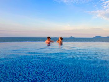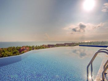 Бассейн на крыше небольшой и с достаточно прохладной водой, но вид с него открывается великолепный. Вечером мы приходили туда со своим чаем (в кафе на последнем этаже- дороговато), никто не гнал.