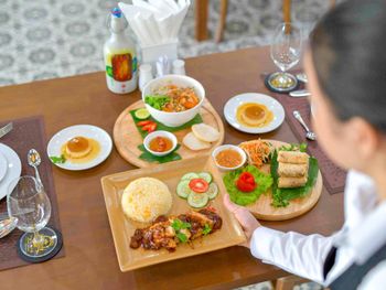 Гостям подают завтрак «шведский стол», завтрак по меню или континентальный завтрак. При Fivitel Hoi An Hotel работает ресторан, где подают блюда американской кухни, блюда вьетнамской кухни и блюда местной кухни. Гости могут попросить приготовить вегетарианские, веганские и безглютеновые блюда.
