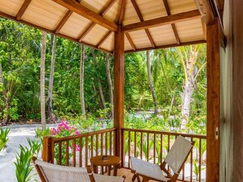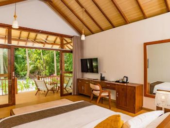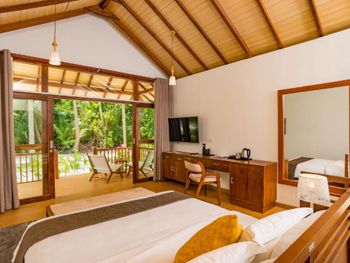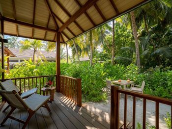 Это был бы неплохой курорт, если бы не наглость менеджмента и жадность владельцев. Обман на каждом вдохе. Забронировали и оплатили виллу с бассейном с видом на море (около 550 долл/сутки). На подлете приходит письмо: «извините, вашей вилы нет, мы поселим вас в домике в саду, но за это вам комплиментом бесплатный чай, подтвердите согласие». Мы съехали с темы, сказали, что будем разбираться по приезду, потому что поняли, что если будем возражать, нас вообще могут обломать и ненароком гидросамолет, который должен нас забрать, потеряется. Проверили свободные виллы на букинге. Наша вилла выставлена на букинге как свободная для бронирования. Сказать, что мы охренели, ничего не сказать. При встрече вышел главный менеджер и начал нас откровенно лечить, что мы ошиблись и бронировали не то. Никакие подтверждения брони, никакие ваучеры, где черными буквами написано «pool beach villa” его не убеждали (фото прилагаю). Только через пол часа крика и угроз туристической полицией и посольством, главный сдался и сказал, так уж и быть, чтобы вы не расстраивались, мы сделаем вам «комплимент» и поселим в виллу с бассейном через 3е суток, а пока живите в домике в саду. Теперь по порядку про курорт. Про домики, их 3 вида. И в жизни они не такие, как на картинке. 1. Вилла с видом на сад, или garden villa (фото) - это хижина дяди тома. Их большинство. Маленькая, чемоданы ставить некуда. Никаких садов там нет. Домик с малюсенькой террасой, на которой два стула и столик и перед всем этим куст с видом на дорогу. Дорога среди местной растительности на пляж, столовую и в бассейн. Ночью не освещается. Дают фонарик. Никаких шезлонгов. Комары. В нашей хижине жила крыса. Очень интеллигентная. Бегала только ночью, фотографироваться стеснялась, поэтому без фото. 2. Вилла с видом на море (фото). Эти получше, тоже с террасой, перед террасой есть два шезлонга, что важно, потому что шезлонгов на курорте по пальцам пересчитать. У некоторых вид на море и правда есть, но выход из виллы на камни.