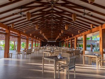 Рядом нет красивого рифа, но рыб довольно много, есть на что посмотреть с маской, в том числе на ската. Ну и за доп стоимость можно съездить на риф - это того стоит. Пока ковид, не разрешают выйти на остров, поэтому закаты мимо - с территории отеля их не видно. Развлечений вечером особо нет, караоке и просмотр кино с русскими субтитрами если только.