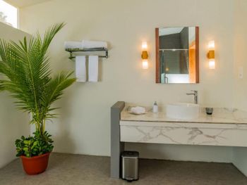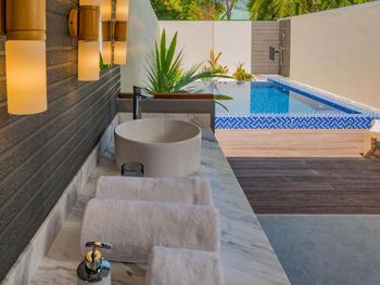 Прекрасное соотношение цена-качество Самое главное достоинство отеля, что он новый! Номера просторные, чистые, есть всё необходимое для комфортного отдыха. Есть несколько вилл, а, в основном, это номера с видом на море или, так называемым «видом на сад», т.е. это номера на второй линии от моря с кустарником перед входом. Территория отеля небольшая, но есть несколько красивых зон с видом на море. Всё, как на картинках красивого безмятежного отдыха:) гамаки, качели в воде, бассейн красиво «перетекающий» в океан. Очень хорошое питание! Вкусно, разнообразно! Хочу отдельно поблагодарить отель за организацию нашего рациона, понимая, что всё это ежедневное многообразие нужно ещё и привезти на остров.