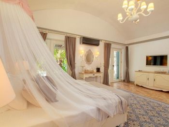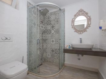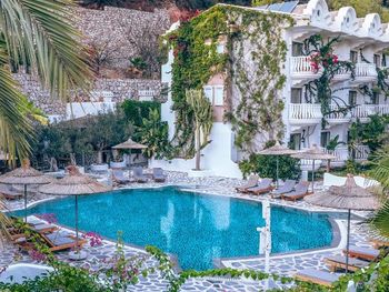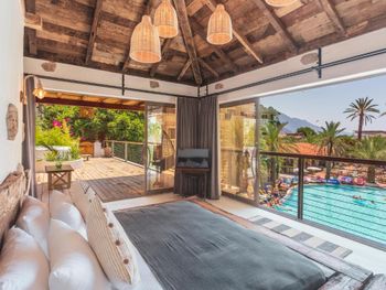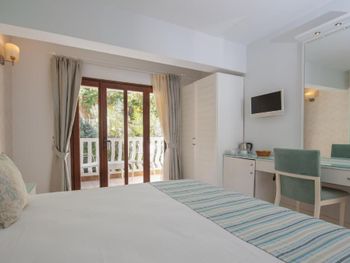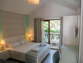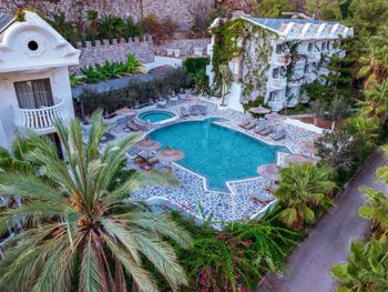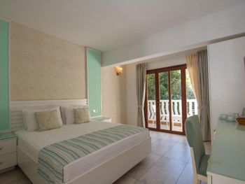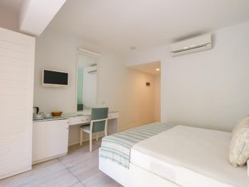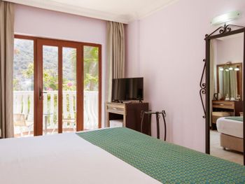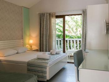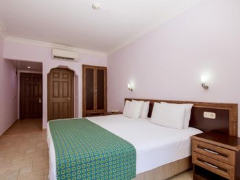 Конечно картинка очень красивая если посмотреть на фото номера и отеля, но в этом отеле все сделано только для красивых фото а не для удобства гостей. Например в нашем номере мы даже не сразу нашли шкаф, и он был на столько маленьким что разложить вещи было в нем нереально, так же у шкафа была сломана ручка. В номере не было даже кресла или какой то удобной мебели где можно было бы посидеть, так что приходилось сидеть на кроватях. Хотя места в номере было предостаточно для того чтобы разместить и кресло и даже шкаф. Нам некуда было класть все наши вещи. Так же горничные плохо моют номера. Когда мы заселились в углу возле раковины была грязь, зеркало было забрызгано высохшими каплями, кран не был натерт, на унитазе было подтеки и следы крови или чего то еще. Мы позвонили на ресепшен попросили убрать все, пришла горничная, я ей показал что убрать, в итоге она убрала только унитаз. Так же на стене возле детской кровати была засохшая сопля от предыдущих гостей, которую я оттер сам. Грязные бокалы в баре и ресторане с засохшей пеной от пива. Они моют посуду в баре без моющего средства и теми же руками после уборки мусора. Интернет был ужасен и им не было возможности пользоваться из за его нестабильного подключения, разве что на баре. Меню в кафе было очень скудным а цены на еду как в хорошем кафе. Так же нас поселили в самый дальний номер, и пришлось пройти несколько лестничных пролетов. Два очень неглубоких бассейна на территории с очень теплой водой. До пляжа идти далеко но работает гольф кар за 250 лир довезет до пляжа. В общем нет ни какого желания возвращаться в этот отель.