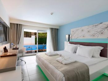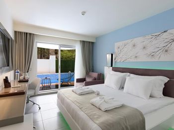 В номерах отеля Flora Garden Ephesus Kusadası — All Inclusive настелен паркетный пол. Во всех помещениях действует бесплатный Wi-Fi. Номера оборудованы телевизором с плоским экраном, кондиционером и мини-баром. Из части номеров открывается вид на море. К приезду гостей в номер бесплатно подают блюдо с фруктами и вином. Безалкогольные напитки в мини-баре тоже предоставляются бесплатно.