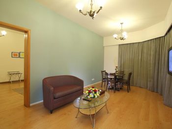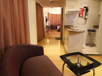 Половина «удобств» заявленных на сайте, отсутвовали. Мы брали апартаменты, и там толком не было посуды. Были вынуждены купить кастрюлю чтобы готовить ребёнку кушать. Вытяжка не работала. Заявленной духовки не было. Даже фен, и тот пришлось выпрашивать... проблема с розетками. Пришлось бегать с тройниками, чтобы зарядить все устройства. Постоянно на выходе из отеля ждут прилипалы: «часы, сумка, подделка нннада?» или «девчонки, шубы покупаем, пройдемте в Абраж, я вам все покажу». В общем минусов все же больше чем плюсов...