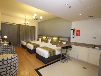Выбирали отель по расположению, станция метро в шаговой доступности - обязательное условие. С этим никаких проблем, станция в 100 метрах. Из аэропорта легко добраться на метро/такси. Но так как нас было 3+1 и много багажа, то заказали трансфер из отеля за 50 дирхам. В окрестностях отеля приходится отнекиваться от навязчивых предложений продавцов, но они понимают с первого раза и сильно не пристают. Матрасы на кроватях комфортные, средней жёсткости, не продавленные. Если планируете активно пользоваться кухней. то уточняйте перед заселением об исправной технике. На плитке одна конфорка не грела, вторая слабая была. Посуда уставшая, можно было заменить, наверное, но нам это было не важно. Все просьбы на рессепшн выполнялись мгновенно, я на лифте до номера не успевал доезжать, а меня уже встречали у номера (похоже, дежурный на каждом этаже есть). Рестораном не воспользовались, оценить не могу. Есть тренажерный зал, чтобы взбодритсья с утра. Несмотря на наличие кухни, никаких насекомых замечено не было. Всё чисто и опрятно. Интернет слабоват, но для соц.сетей и серфинга достаточно.