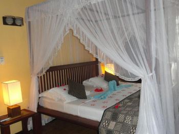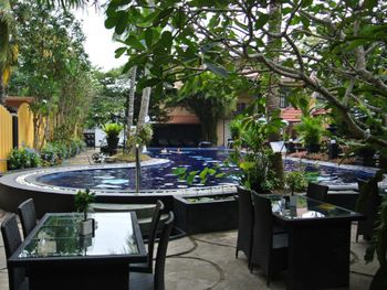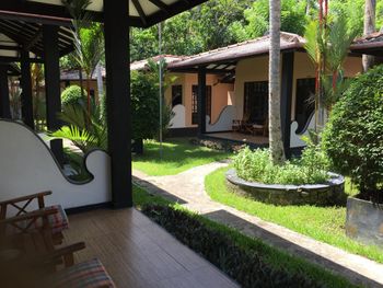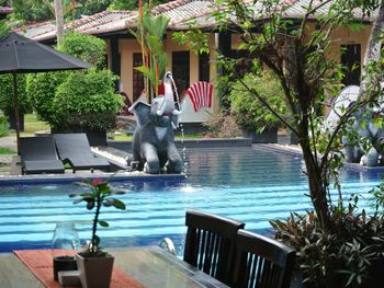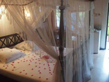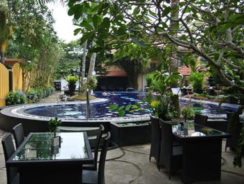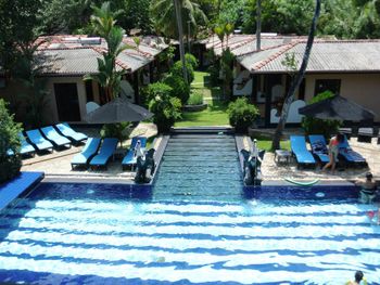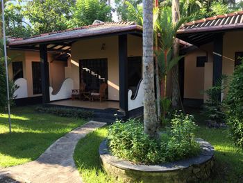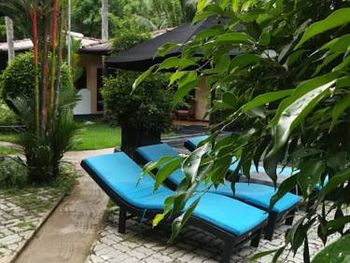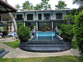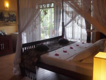Очень приятный отель. Его нельзя сравнивать с Аралией в Унаватуне или рядом Турецких и Египетских отелей. Небольшая, компактная и очень зеленая территория с совершенно волшебным садом, за которым очень хорошо ухаживают. Деревья, кустарники, цветы, лотосы, обрамляющие бассейн - создают невероятную атмосферу и радуют глаз. Всегда можно найти место и для того чтобы быть на солнце (в том числе на лежаках, вокруг бассейна), и всегда можно найти тенистый уголок ( в том числе в бассейне). Очень красиво! Ни разу не были в обычных номерах, но дважды останавливались в домиках-кабанах. Размер домика на двоих вполне достаточный, есть терраса-балкончик, если позаботиться о спирали и брызгалках от комаров, то очень приятно посидеть там вечером. Кровать большая и удобная, с паланкином. Есть кондиционер, вентилятор, сейф, холодильник, обычно не работающий ТВ, шкафы, стол, чайник и кружки/стаканы. В санузле душ, фен, предоставляют гель и шампунь. В бассейне купались круглосуточно, это большой плюс - возможность освежиться в жаркую полночь. В номерах по местным меркам довольно чисто, полотенца меняли каждый день, если оставлять небольшие чаевые, то качество уборки улучшается. Завтраки в сезон - шведский стол, не шикарно, но вполне достаточно, чтобы наесться. Вне сезон - готовят индивидуально и так нам даже больше понравилось, яичница или на ваш вкус по-другому приготовленные яйца, тосты, джем, фрукты, сок и кофе. Вкусно и сытно. Есть возможность заказать обед, либо ужин по меню, а также, если принесете рыбу, то за отдельную плату ее приготовят и красиво подадут. По приезду, пока оформляют документы, угощают холодным соком и это очень кстати после дороги. Персонал приветливый и очень приятный хозяин. Отель нам нравится, живешь как в заповеднике: с птичками, варанами, ящерками и бурундуками. Останавливаемся уже второй раз.