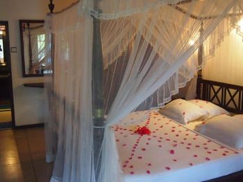 Номер с виду неплохой, но запущенный капитально. В углах, на шкафах паутина и грязь , под кроватями пылище. Хотя убирались каждый день. На основной дорожке к бунгало пальмы с кокосами. Очень опасно, один при мне упал.