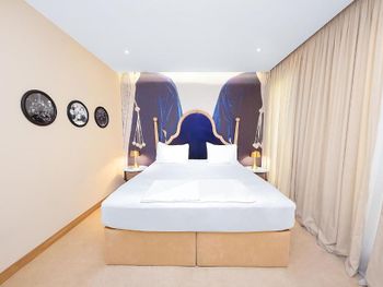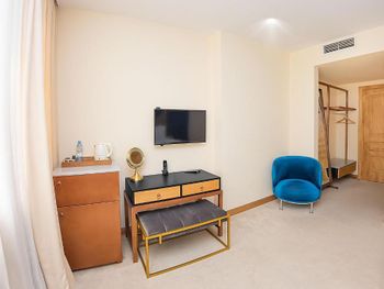 Номер был "уставший", грязное пятно при входе на ковре в супериор номере, свистящий холодильник, аж пришлось отключить мини бар, пятна на подушках, предложенных как дополнительные, горячая вода с перебоями видимо для любителей контрастного душа) И ещё нюанс -лифт между этажами , тяжёлый чемодан брать не советую ,а так же на просьбу дать утюг -дали нечто законченное, было страшно гладить рубашку