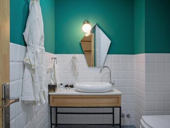 Вежливый персонал, интересная дизайнерская задумка в интерьере, приятные цвета, просторная ванная комната,хороший завтрак