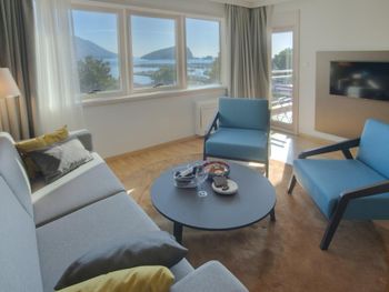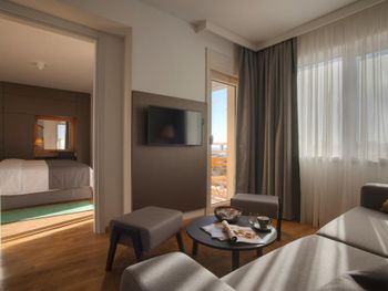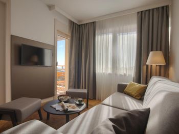 Номер большой-две комнаты и из обеих выход на балкон.Чисто,уборка ежедневно.Вид на море красивый,но он захватывает и стройку рядом что немного все портит.Завтрак нормальный,голодным не останешься.Очень понравился ресторан при отеле. Персонал очень доброжелательный,во всем помогает.
