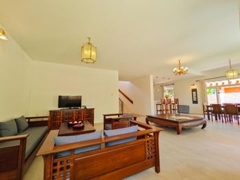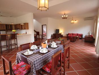 Decorated with Vietnamese fabrics and furnishings, the air-conditioned villas come with a dining area, kitchenette and lounge. Each is equipped with a 42-inch flat-screen TV, DVD player and personal safe.