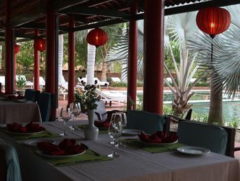 В метрах 30 от отельного пляжа на берегу расположены прямо так скажем помойки. Ветер на берегу достаточно сильный, и все это добро летит в море, во время купания постоянно пристает мусор, да и на берег прибивает немало. Конец октября-начало ноября - волны очень сильные. Завтраки сложно назвать разнообразными. Выбор блюд невелик. Свежевыжатые соки на завтраках разбавлены водой с сахаром. Если решите обедать/ужинать не в гостинице (меню небольшое, дорого), придётся выезжать в центр Муйнэ ((на бесплатном автобусе (4 или 5 раз а день ходит и занимает полчаса времени а пути) или на платном автобусе #1 (около 16000vnd, около 50 руб идёт 45-50 минут)), так как поблизости поесть негде. Есть пара кафе, но очень грязно, готовят из замороженных полуфабрикатов и порошковых бульйонов