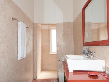 Пожалуй единственный нюанс: в ванной комнате, из-за бортика вокруг ванны вода постоянно стекает на пол и образуется большая лужа. Может повесить занавеску, чтобы устранить этот недостаток. Придумайте что-нибудь, пожалуйста, а мы обязательно к вам вернемся.