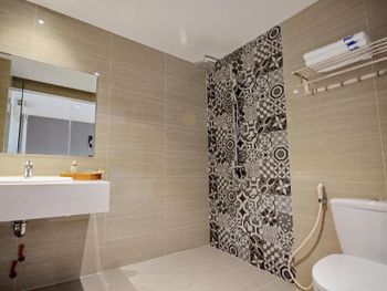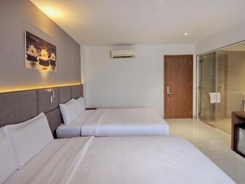 Очень просторный номер. Чисто, хорошо прибирают. Очень большие кровати) на одной можно втроем поместиться, а у нас было две) холодильник и кондиционер отлично работают. Всего 2 минуты до пляжа. Отель скромный, но приличный)